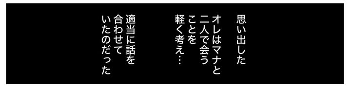 オレはヒナコが出て行った経緯をマナに話した。「今は実家に帰ってるけど、ちょっと大げさすぎると思う。まあ、冷静になったら戻ってくるだろうけど。」するとマナは顔色を変え、オレの話を途中でさえぎった。「ちょ……ちょっと待って!!」