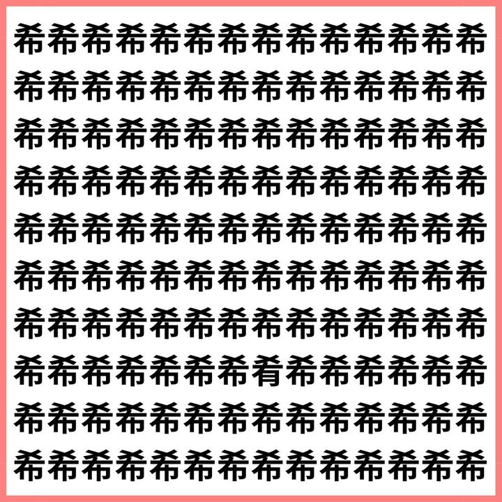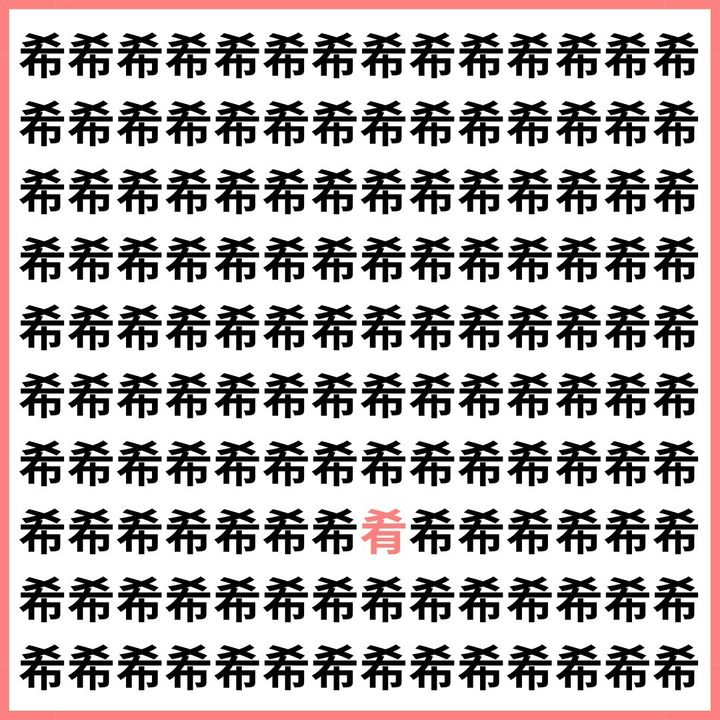 たくさんの「希」の中に、1文字だけ違う漢字が混ざっています。