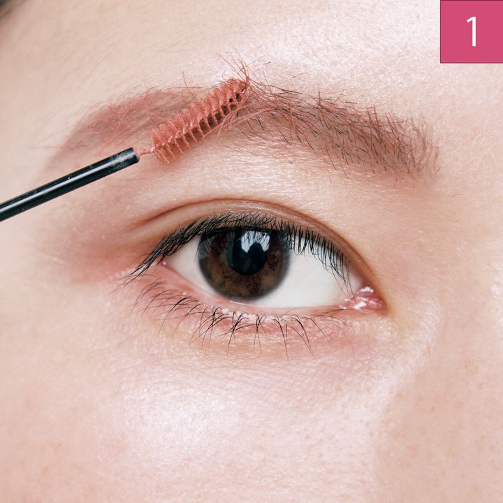 眉尻から毛を立たせるように、しっかりアイブロウカラーを塗る。仕上げに眉頭から塗り、整える。