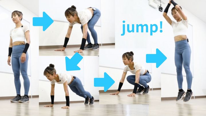 最初は飛ばないバーピーから始めて、少しずつ強度を上げていきましょう。