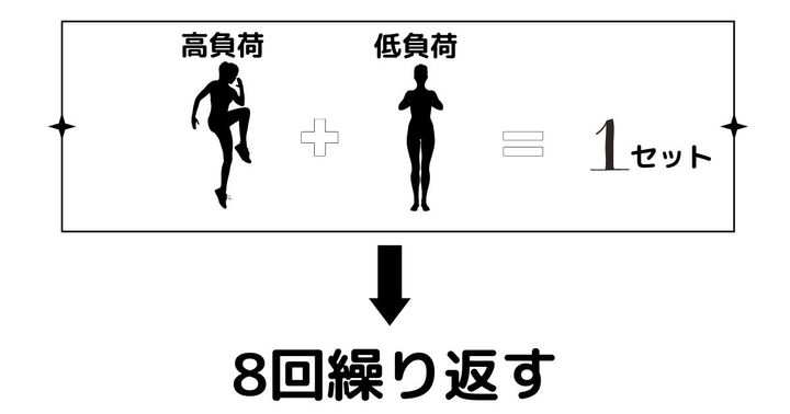 より高い強度を求める場合は、クロスフィットトレーニングのように「デス・バイ・バーピー」や「タバタ式(20秒運動+10秒休憩×8セット)」を取り入れると、心肺機能や瞬発力の向上にもつながります。