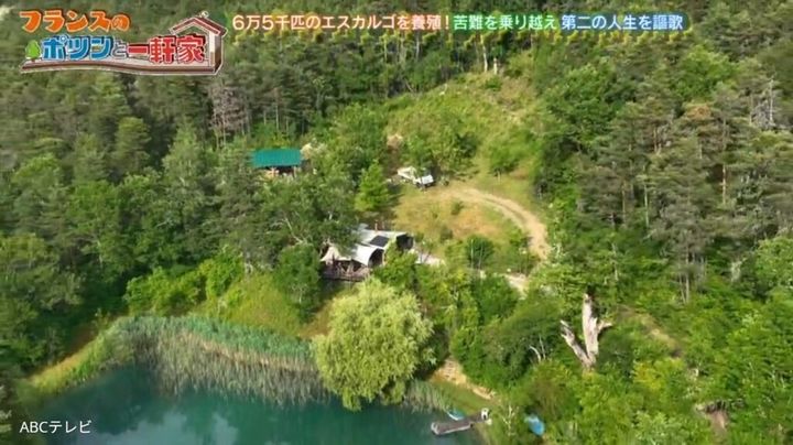 鉄分とマンガンを含んだ岩が酸化し、山肌が独特の紫色に染まっているアルプスの険しい山道を抜け、深い森を抜けた先に広がっていたのは、息をのむほど美しい光景。静寂を支配するのは、川のせせらぎと木々の葉擦れの音。穏やかな湖面に陽光が乱反射し、そのほとりには農業用のハウスが2棟並んでいる。捜索隊を温かく迎え入れてくれたのは、「ポツンと一軒家」のご主人(60歳)とパートナー(58歳)。彼らはここで、実に6万5000匹ものエスカルゴを飼育しているという。