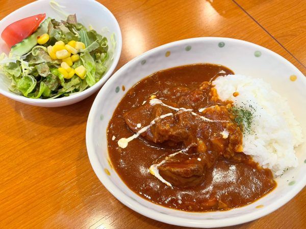 Aセット/ミニサラダ+懐かしの牛すじライスカレー+ドリンク+ランチスープ or ぷちデザート(ケーキハーフも可) 1,520円