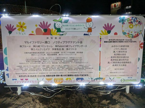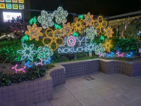 2025年のライトアップのテーマは「JOY!NOKUCHI~HAPPY FLOWER ILLUMINATION~」だそうです。