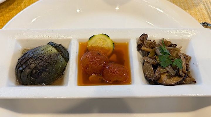 この日のオードブルは、丸小茄子のコンソメ煮浸し、