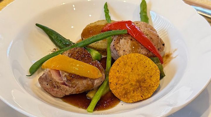 メインの日光「HIMITSU豚」フィレ肉のソテー(野菜多めの付け合わせ)