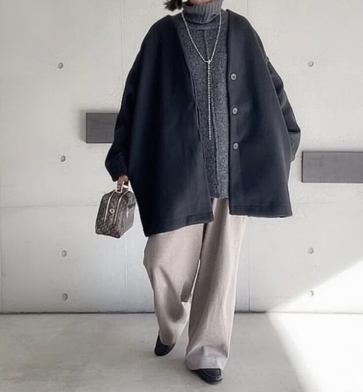 ② 「黒×グレー×ベージュ」でつくるリラックス上品コーデ