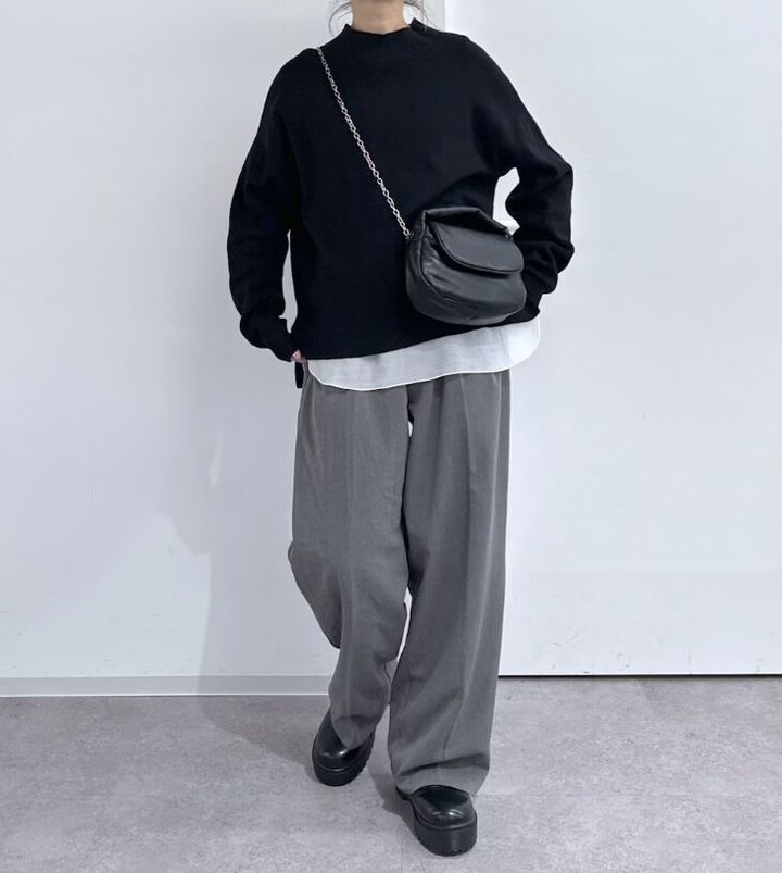 ③ 「黒×チャコール」で魅せるミニマルモードスタイル