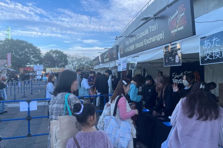 ブルーノ・マーズにとって初のアクスタ&アクキーが特典として付く本イベント限定の3枚組CDボックスセット、オリジナルデザインによるスカジャンをはじめとした公式グッズの販売。その特別感満載なグッズを求めて、開場時間から多くのファンが列を作っていました