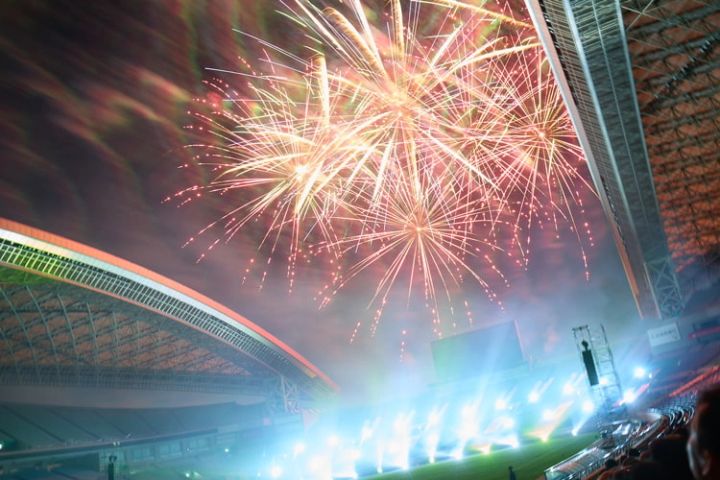 ブルーノ本人からの熱いラヴコールで観客からの期待感も冷めやまぬなか、「24K Magic」の演奏と同時に夜空に咲き誇る大輪の花火が!
