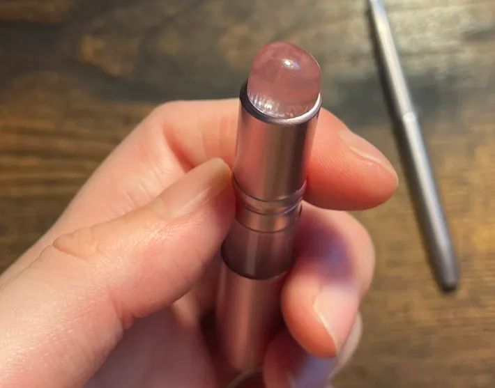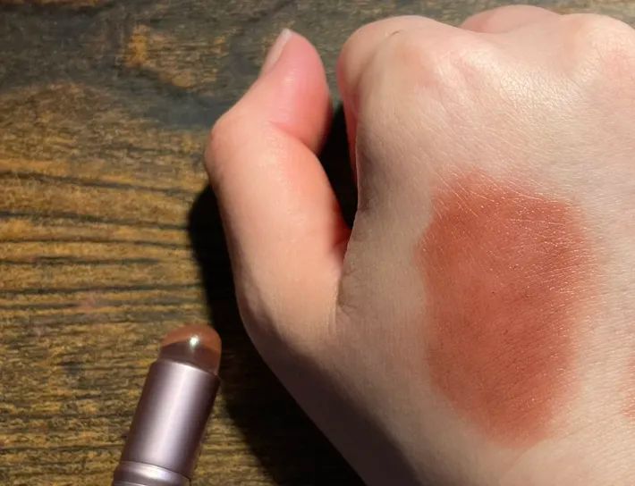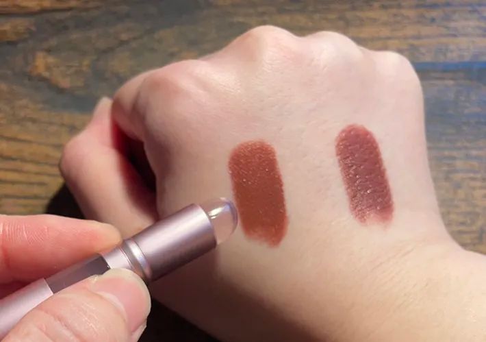 シリコン製のリップブラシを使って、トントンと優しく叩いて広げてみると…。