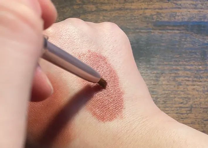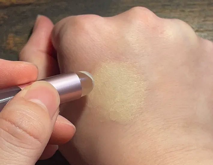 手の甲にコンシーラーをつけて、リップブラシでぼかしていくと…。