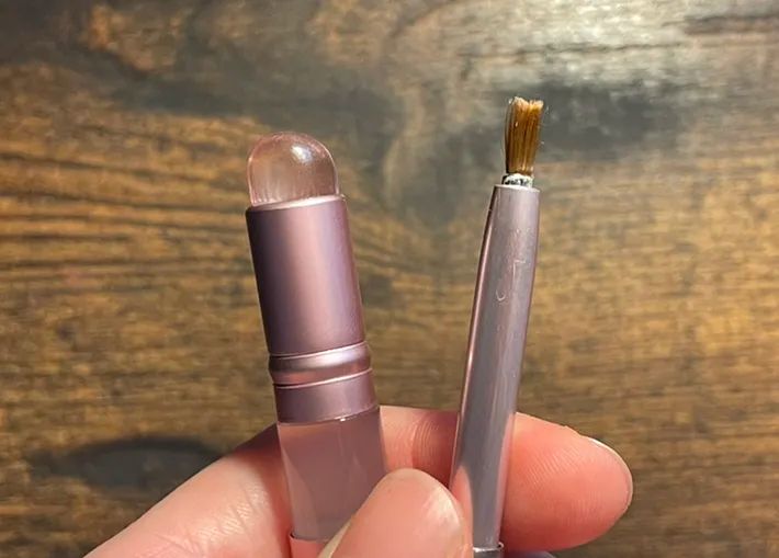 筆者が以前から使っている、筆タイプのリップブラシと比較すると、サイズ感や見た目の違いに驚くことでしょう。