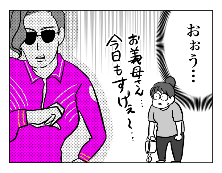 クミさんは地方都市に住むパート勤務の35歳。義実家の隣に家族で暮らし、11歳の娘と7歳の息子を育てています。平穏な日々を送っているものの、隣に住む個性的なお義母さんにはときおり驚かされているようです。ある日、全身ショッキングピンクの派手な格好でジョギングへ出かけていったお義母さん。クミさんはその姿を呆然としながら見送りました。