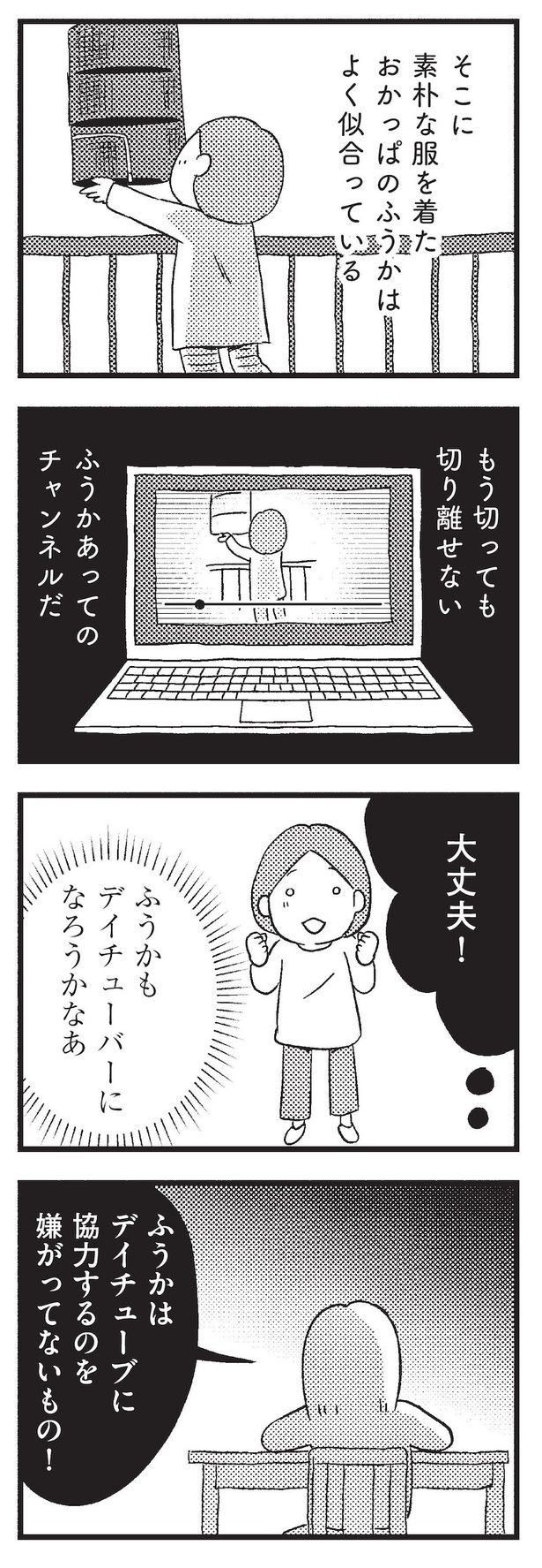 デイチューブは私たちが自由になるための唯一の方法だった――。職場でも家庭でも頑張りが認められず、自分に自信が持てずにいた主婦・山田あずさ。ある日始めた「デイチューブ」の動画配信で、自分の料理が認められ、少しずつ配信活動にのめり込んでいく。娘を出演させた動画の評価が高く、登録者数も増加することに気づいたあずさは、自分をないがしろにする夫と別れ、自立するためにも、ついには娘の顔出しまで考えるようになり――。動画配信によって歪んだ親子の関係性を描くセミフィクション『子どもをネットにさらすのは罪ですか?』を好評につき再連載いたします。