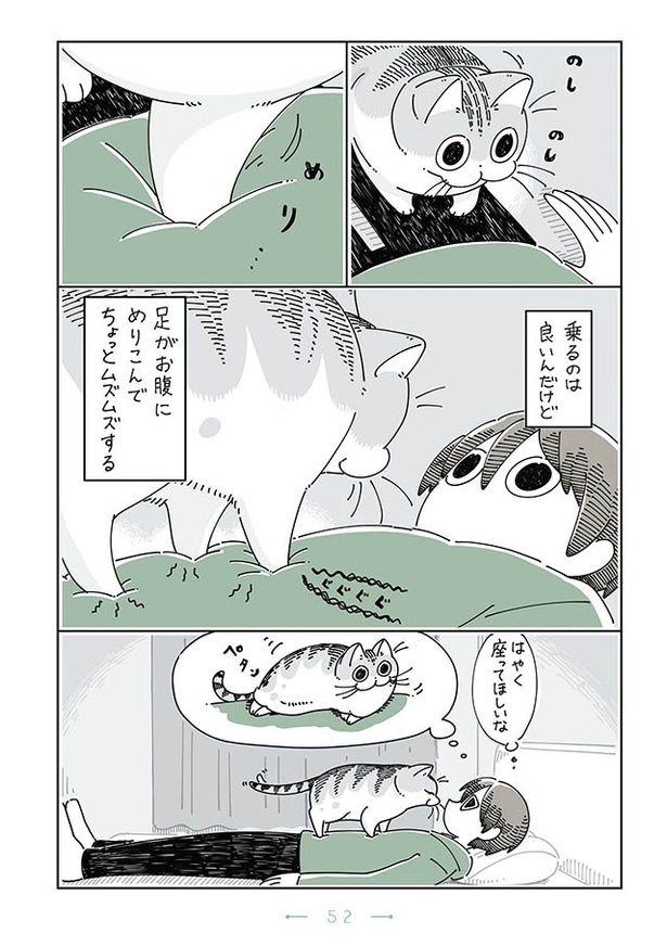 猫がお腹に乗ってくると足がめりこんでムズムズする。お願いだからはやく座って!/夜は猫といっしょ3(38)