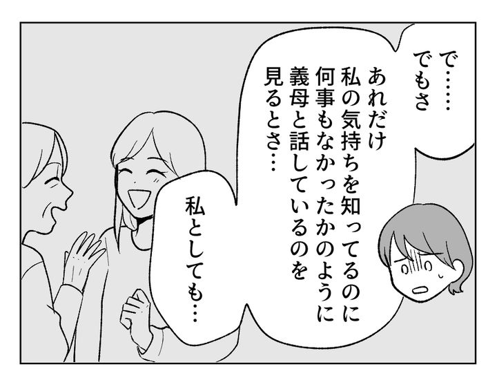 私(チヒロ)は、長男・レオを出産後に退職。しかし夫・マナブの一馬力ではマイホーム資金は貯まらないので、「3年間の期間限定」で義実家で同居をはじめました。しかし義母の口出しがひどく、私は早々に疲れてしまったのです。そんなときツカサさんと出会い、すっかり意気投合。ところがツカサさんが義母と知り合いだと判明! さらにツカサさんと義母が仲良く談笑している姿を見てしまいます。ツカサさんは表面的には私の味方のような態度を取っておいて、心の中では義母の味方だったのでしょう。しかし幼馴染からは「あんたの頭の中は園児と同じレベル」と言われてしまい、さらには裏切っているのは私の方だと指摘されて……?