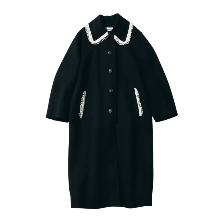 たっぷりのレースやリボンポケットをつけたのがポイント。どこから見ても可愛いアウターに仕上げました」