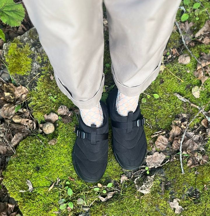 このときが初おろしだったのですが、あまりの快適なはき心地に驚きました。スニーカーでもはき始めは90%の確率で靴ずれする筆者にとって、これはかなり珍しいこと。しかも驚くほど軽くて久しぶりのハイキングを楽しむことができました。ソールはけっこうな厚みがあるので盛れますし、インナーにGORETEX を使用していて防水性が高いのもうれしいポイント。それでいてスマートなフォルムなので、すっきりした足元が演出できるので、街でも使いやすい1足だと思いました。