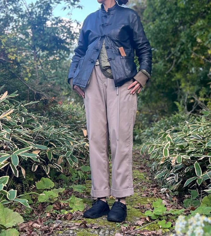 今回の旅の着こなしがこちら。かなりワイドなチノパンをセレクトしましたが、このシューズはボリューム感が絶妙なので、あらゆるボトムスと合わせやすいはず
