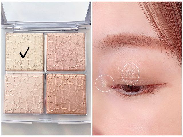 ツヤを添えるハイライトは、くすみカラーの頼れる味方。 目頭と黒目の上にのせるだけで、肌全体がぱっと明るく見えます。