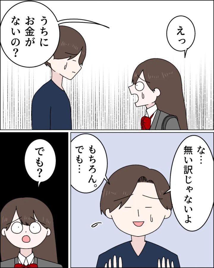 「えっ、うちにお金がないの?」と驚くジュリちゃん。「な・・無い訳じゃないよ、もちろん。でも・・」と言葉を濁すケイさんに、「でも?」とジュリちゃんが聞き返すと、