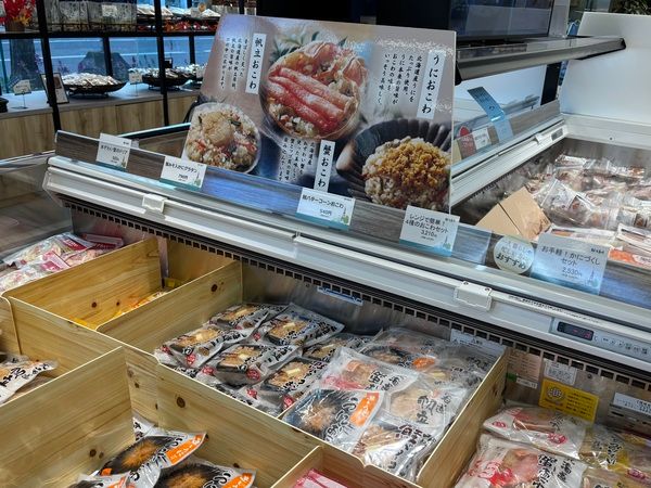 ウニや蟹のおこわ、イカや鮭の干物などお酒のおともにもぴったりなアイテムも!
