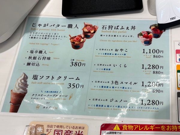 数台あるレジのうち、一番左側ので塩ソフトクリームを含む作りたてのメニューをオーダーできます。