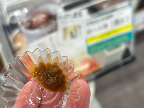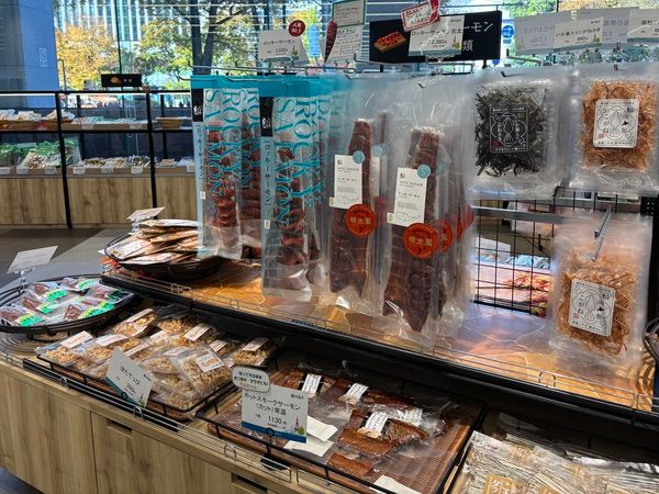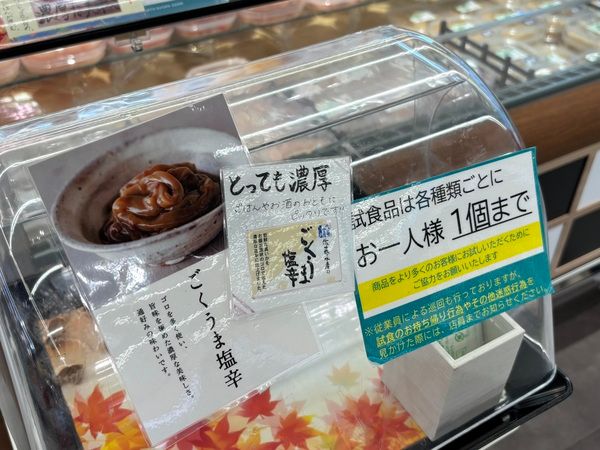 店内では海産物の試食コーナーがあり、訪れた時は数種類が並んでいました。