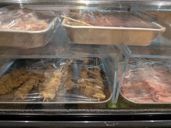 カウンターのケースの中には、丁寧に串刺しにされたお肉がずらりと並んでいます。