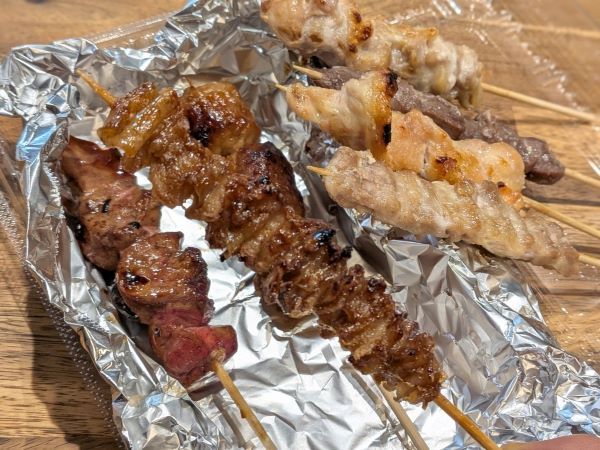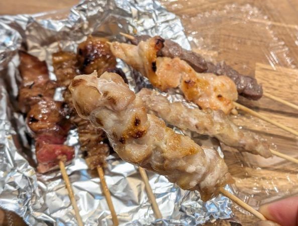 焼きたてはどれもおいしそうです。鳥肝はふっくらしていて臭みも一切ありません。たれがテリテリのつくねはジューシーでご飯のおかずにもピッタリです。