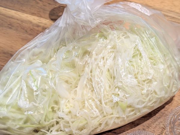 無料サービスの「酢だれのキャベツ」は、珍しい千切りのタイプです。ふわっとしていて食べやすく、止まらないおいしさでした。