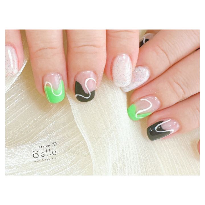 【個性派アートネイル】鮮やかなグリーン×ブラックで視線釘付け!