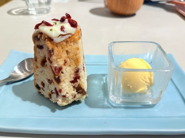 こちらはクリスマスバージョンのデコレーションがされたもの。クランベリーといちじくが入っています。冬がやってくるんだなぁとしみじみ。たっぷりフルーツがジューシーでおいしかったです。