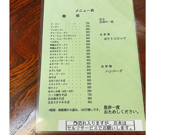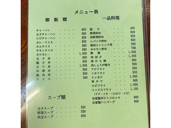 こちらのお店、中華料理屋さんなのですが自家製のコロッケが人気とのことで楽しみにしてきました。メニューはこちら。