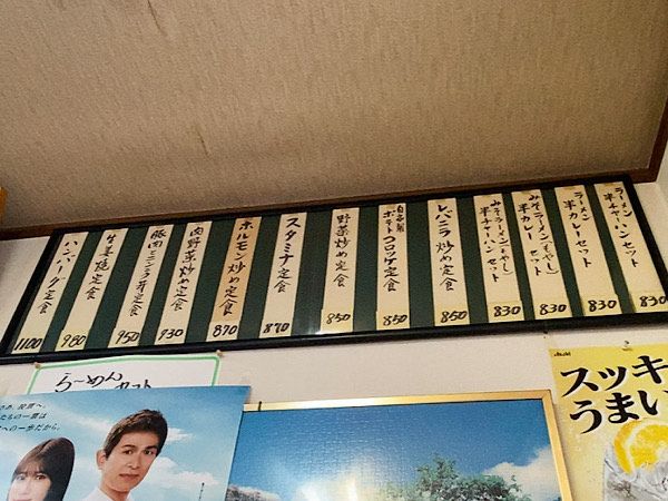 たくさんのメニューに目移りしてしまいますが、今回は目当ての「自家製ポテトコロッケ定食」と「みそラーメン(もやし)半チャーハンセット」をオーダーしました。