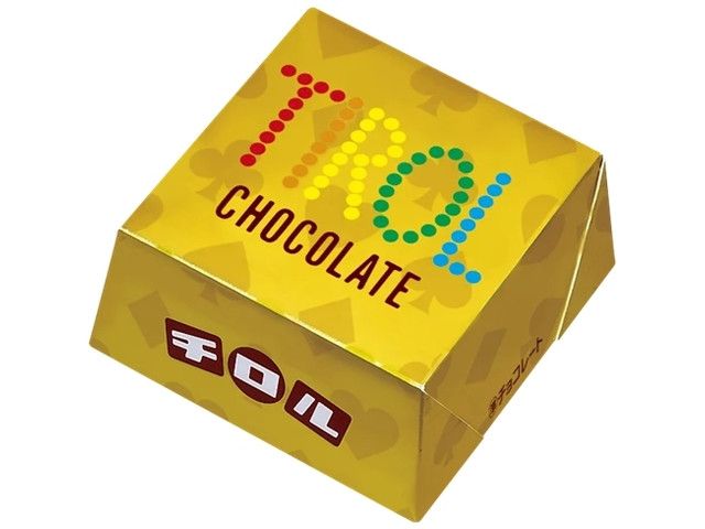 チロルチョコの台形型をそのまま大きくしたテンションの上がるBOX商品。プレゼントにもぴったりなキラキラと黄金に輝く華やかなデザインで人気ロングセラー4種が楽しめる!