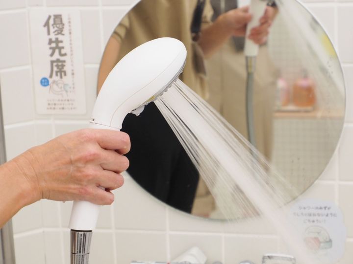 続いて、シャンプーやトリートメントのすすぎ時に適した「ヘアケアモード」に切り替えると、ファインバブルが含まれているのもあって「プレシャンプーモード」よりもやわらかい感触。中心部分の密集した水流の刺激からは爽快感を得られます。