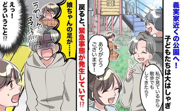 義母「私が見てるから」義実家近くの公園へ。子どもを義母と夫に任せたら…娘の悲鳴!一体何が!?