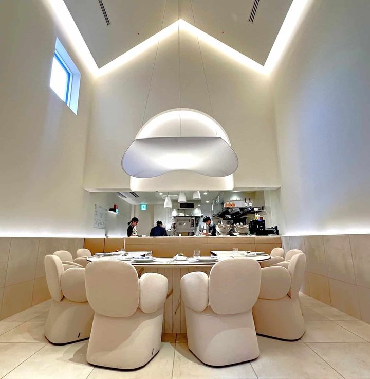 デザインホテルとして知られる「ホテル イル・パラッツォ」に併設されていたチャペルをリノベーションしたため、天井高6mを超える開放的な空間も素敵。内装の設えは、料理が最も美しく輝くために白一色で統一されており、一歩足を踏み入れた瞬間その世界観に引き込まれます。