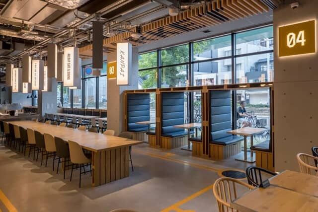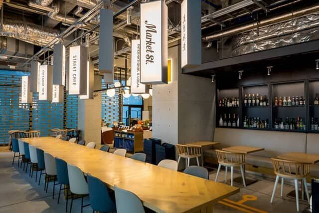店内はホテルの近くにあるレトロでノスタルジックな「柳橋中央市場」をヒントにモダンにデザインしています。