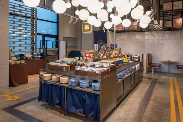 フランス発のブティックホテル【イビススタイルズ名古屋】。朝食は市場をイメージした1階のレストラン「Market st.(マーケットストリート)」に、名古屋めしや和洋のビュッフェを用意します。営業時間は7時から10時まで(最終入場9時30分)。料金は大人2,500円、小学生1,250円、未就学児は無料です。