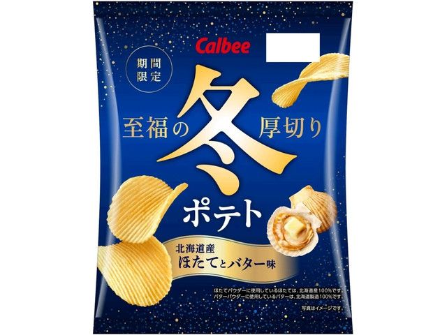 ●国産じゃがいもを使用した冬のくつろぎ時間を彩る今だけの至福の厚切りポテトチップスです。 ●「北海道産ほたてとバター味」は、北海道産ほたて※1に北海道製造バター※2を合わせ、コク深くうま味のきいた、贅沢感のある味わいに仕上げています。 ※1 ほたてパウダーに使用しているほたては、北海道産100%です。 ※2 バターパウダーに使用しているバターは、北海道製造100%です。