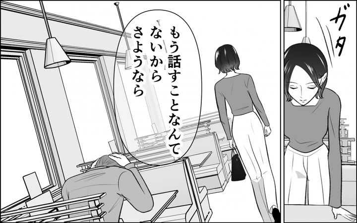 明け方に帰宅した夫。位置情報から幼馴染・サナの家にいただろうと問い詰めると言い訳をやめて謝ってきた。許せない妻。数週間後、夫から離婚を切り出される。「彼女を愛してしまった。できる限りのことはする」夫の裏切りに妻は思いつく限りの言葉で夫を責めた。夫にとっての妻や娘の存在はなんだったのだろうか…。