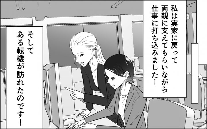 同僚のナナコは私を心配しながらも、何も聞かず、そっと私を見守ってくれました。そんな気遣いがありがたく、落ち着きを取り戻したころ、ナナコに打ち明けることに…。