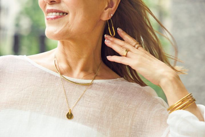 「アクセサリーはハイブランドとプチプラのミックスがいまの気分」。「カルティエ」「フィリップオーディベール」「3COINS」をミックス。