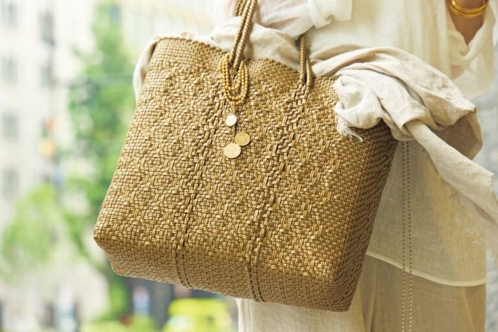 「『レトラ』のメルカドバッグは、いくつも持っているほどお気に入り。気軽に持ちやすく、ゴールドで華やかな雰囲気になります」
