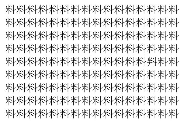 2. 【脳トレ】「料」の中に紛れて1つ違う文字がある!?あなたは何秒で探し出せるかな??【違う文字を探せ!】