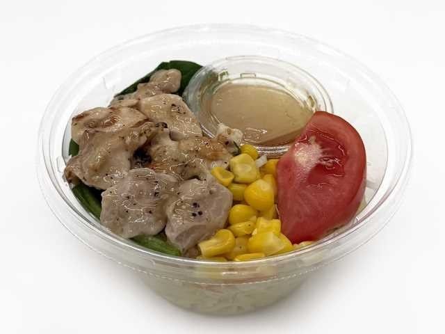 岩手県産菜彩鶏肉を炭火焼にし、パスタサラダと合わせました。塩ドレッシングでさっぱりとお召し上がりいただけます。
