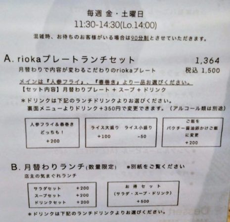 ※夜は居酒屋 もりおかとして営業。金曜・土曜の昼のみ食堂カフェ riokaになります。